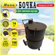 Вверху бочки предусмотрено невысокое цилиндрическое отверстие с диаметром 115 мм, для выхода дыма, на которое можно установить трубу длиной 1 м с дефлектором , для улучшенной тяги горения. Бочка для сжигания мусора усиленная, это неразборная конструкция, которая со своими транспортными габаритами, отлично помещается в салоне легкового автомобиля, тем самым давая возможность покупателям самостоятельно забрать её со склада и привезти к себе на участок.