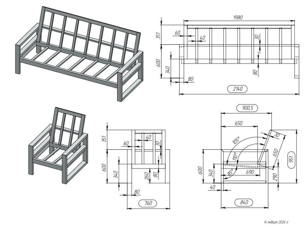 Кровать и кресло - Удачный сезон. Мебель в стиле Лофт -. Артикул товара: 3297